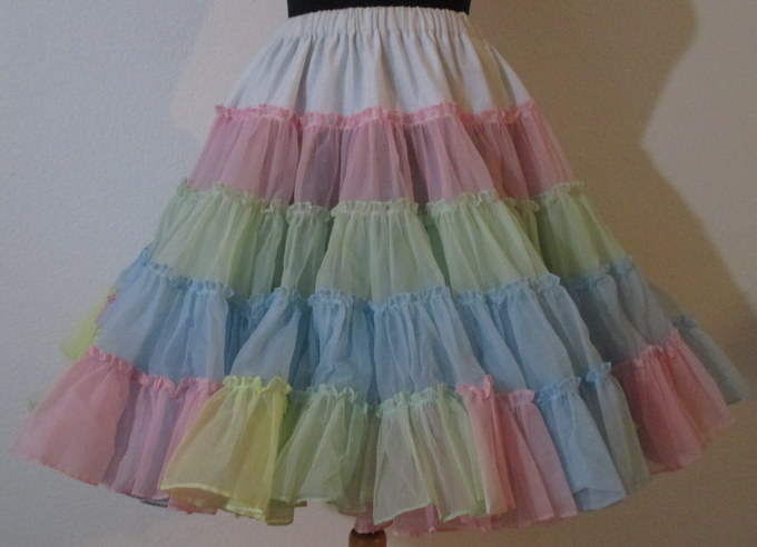 wunderschön gearbeiteter bunter Organdy-Petticoatsehr außergewöhnlich in Regenbogen Farben2-lagig, 4-stufigGummibund Material:100 % NylonTop Zustand