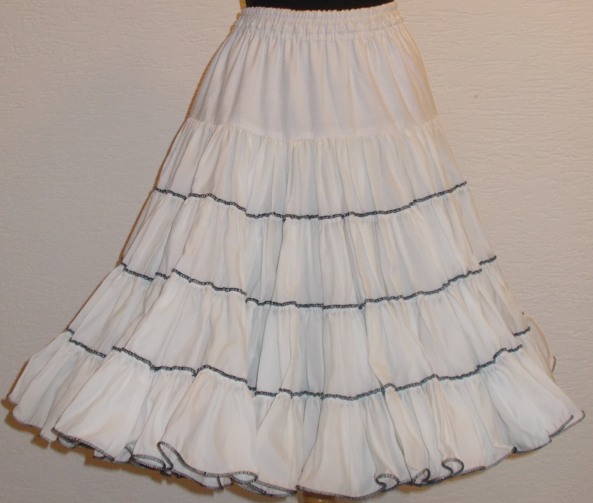 weisser Petticoat von Feha Modelle bei diesem Petticoat wurde sehr viel Material verarbeitet, das Material ist weich und angenehm zu tragendie einzelnen Stufen sind mit schwarzem Faden gekordelt2-lagig, 4- stufigsehr guter Zustand