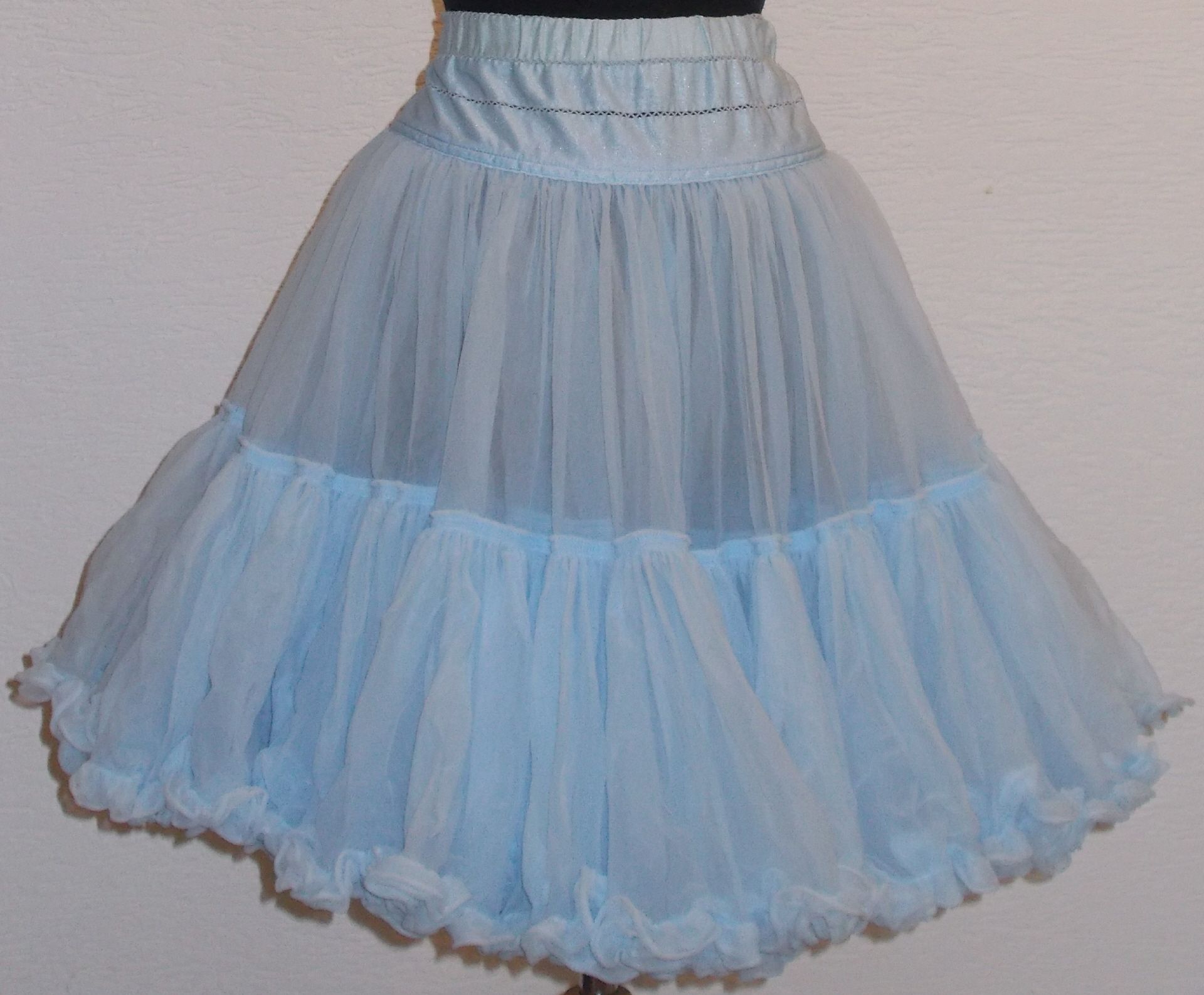 hellblauer soft Petticoat4 mal höhenverstellbar2- lagig , 2-stufigunten mit Fluffy- Rüsche Gummiband ist durch Knopf enger zu machenguter Zustand!