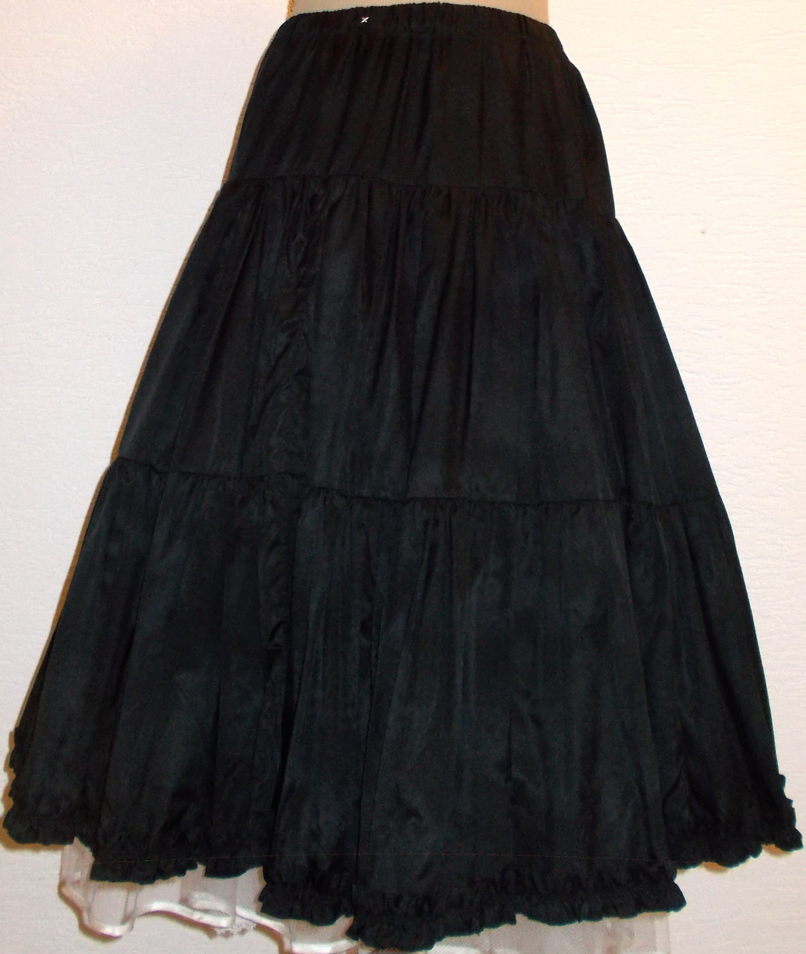 schwarzer langer Petticoatdieser wunderschöne Rock kann als Petticoat aber auch als Überrock getragen werden3 StufenSatinstoffunten 4 cm breite RüscheTOP Zustand!