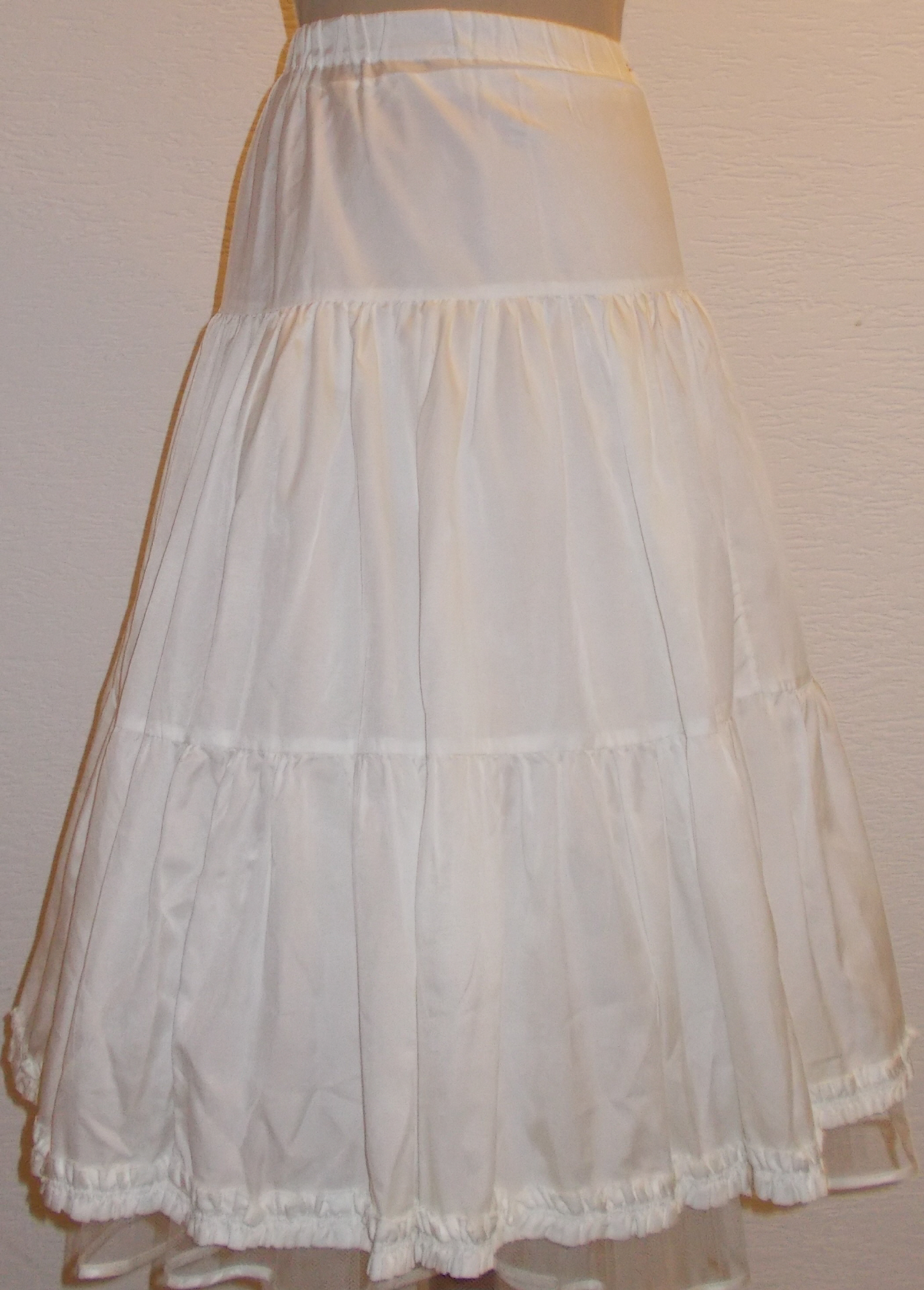 weisser langer Petticoatdieser wunderschöne Rock kann als Petticoat aber auch als Überrock getragen werden3 StufenSatinstoffunten 4 cm breite RüscheTOP Zustand!