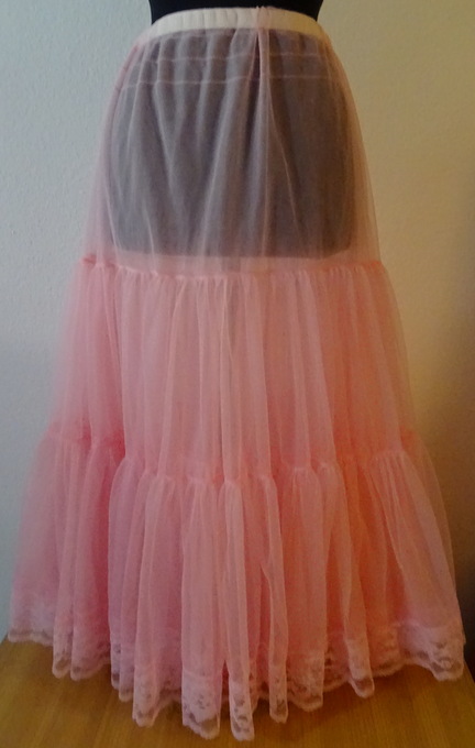 edler Prärie-PetticoatFarbe rosé2 Lagen3 Stufenmit 8 cm langer Spitze verziert3 x höhenverstellbarDer Gummibund ist durch Knopf verstellbarMaterial: 100 % NylonTOP Zustand