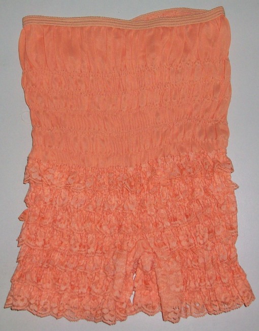 Farbe helles orangeGrösse L (fällt sehr schmal aus)7 Stufen Spitze7 cm BeinansatzTaille 52 cm - 80 cm sehr guter Zustand100% Nylon