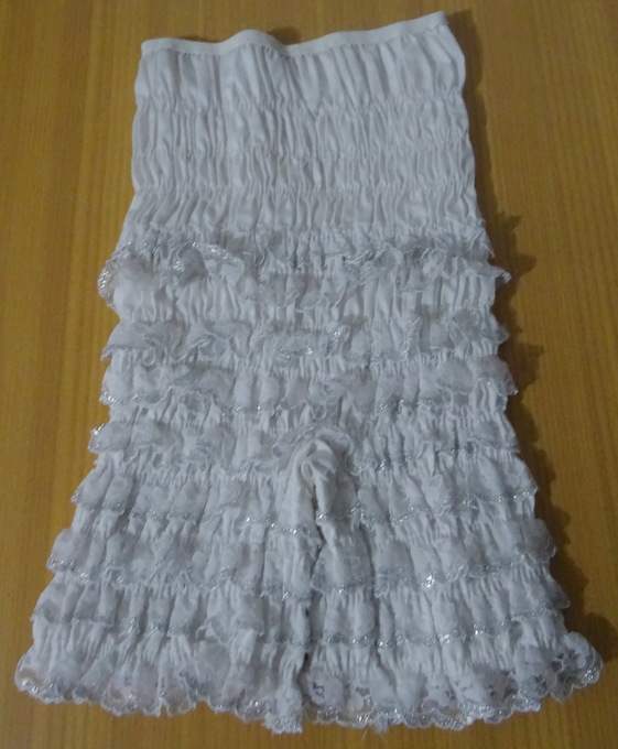 Pettipants in weiss9 Stufen Spitzedie Spitze ist am gewellten Rand mit Silberfaden durchzogen10 cm BeinchenTaille 50 cm - 62 cmSchenkelumfang 32 cm - 38 cmMaterial: 65 % Polyester35 % CottonNEU NEU NEU