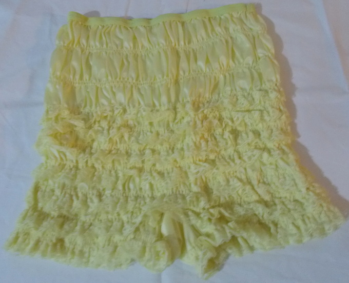 hellgelbe Pettipants7 Stufen Rüschchengerade geschnittener BeinansatzGröße STaille 60 cm - 82 cmSchenkelumfang 44 cm - 52 cmMaterial:100 % NylonTop Zustand