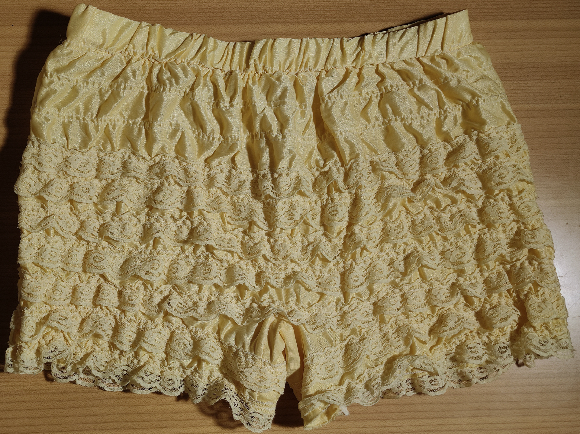 zitronengelbe Pettipants 7-Stufen RüschchenBeinansatz 4,5 cm die Pettipant wurde im Bund gekürzt und mit neuem Bund versehenMaße: Taille: 74 cm bis 92 cm Schenkel: 56 cm - 60 cmgebrauchter Zustand