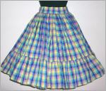 weit schwingender Tellerrockin den Farben hellblau, gelb und purpleunten 17 cm Volant5 cm breiter Starrer Bundhinten 23 cm Reissverschlussguter Zustand