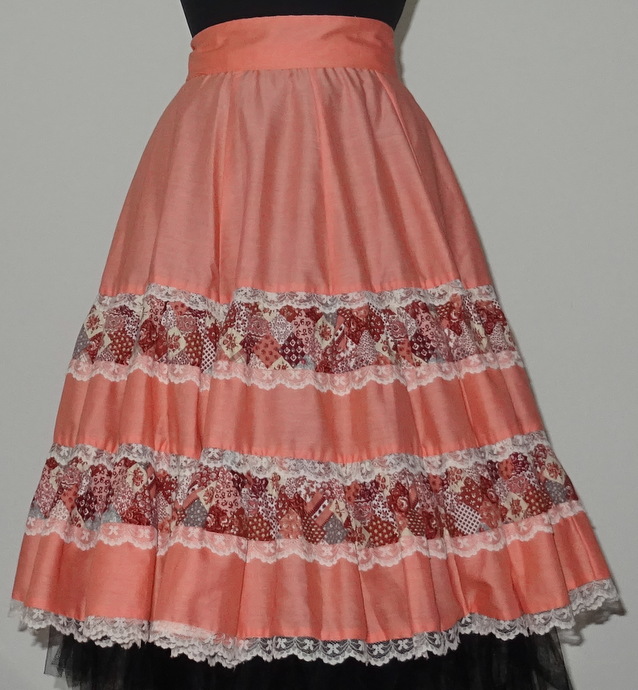 der Saum schließt mit 3 cm breiter weißer Spitze ab