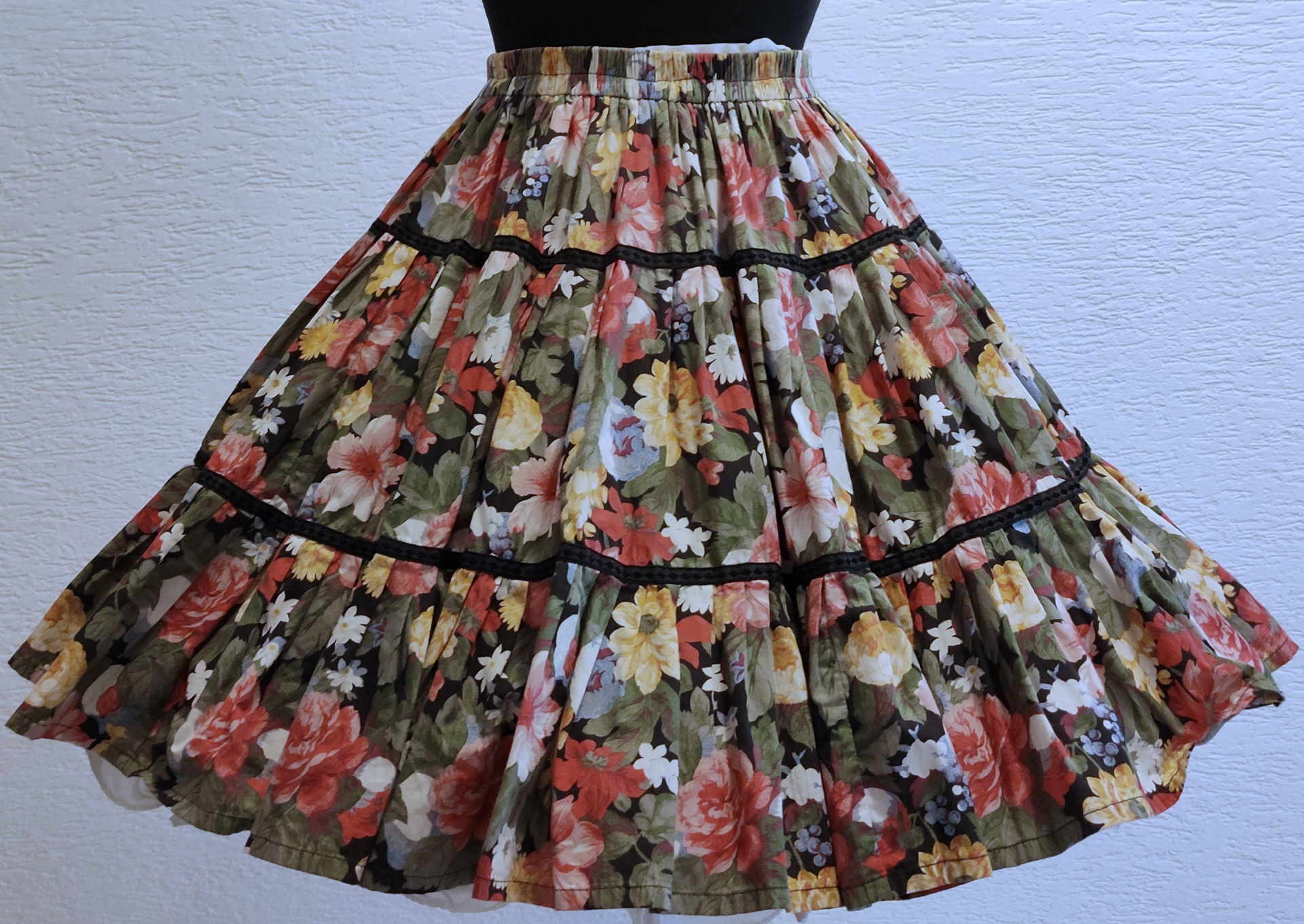 geblühmter 3- Stufenrockder Rock ist an den Stufen mit schwarzer Borde verziertGummibund in 3 cm BreiteNEU