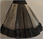 durchsichtiger Rock in grau-dunkelgrün8 Bahnen Bahnen in hellem grau und Bahnen in dunkelgrün mit schimmernden PünktchenGummibund 4 cm breitunten 13 cm breites Volant