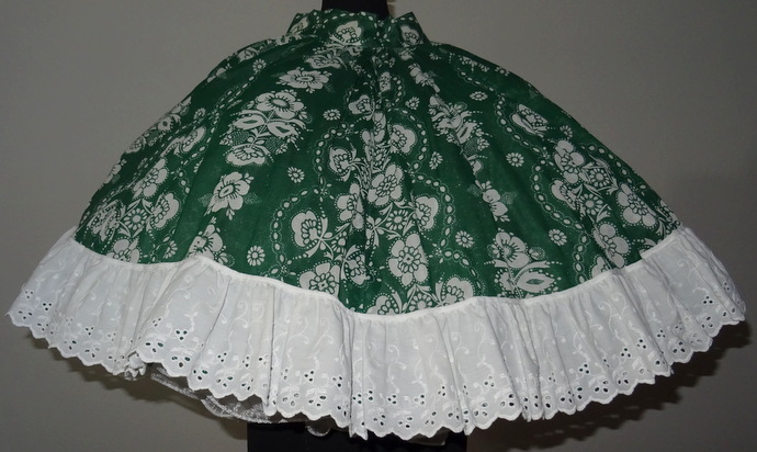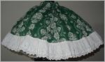 grüner Tellerrock mit weissem Blumenmusterunten doppeltes Volant in 11 cm Länge mit Spitze und Lochstickerei verziert5 cm breiter starrer Bundhinten mit 18 cm ReissverschlussMaterial:Mischgewebeguter Zustand