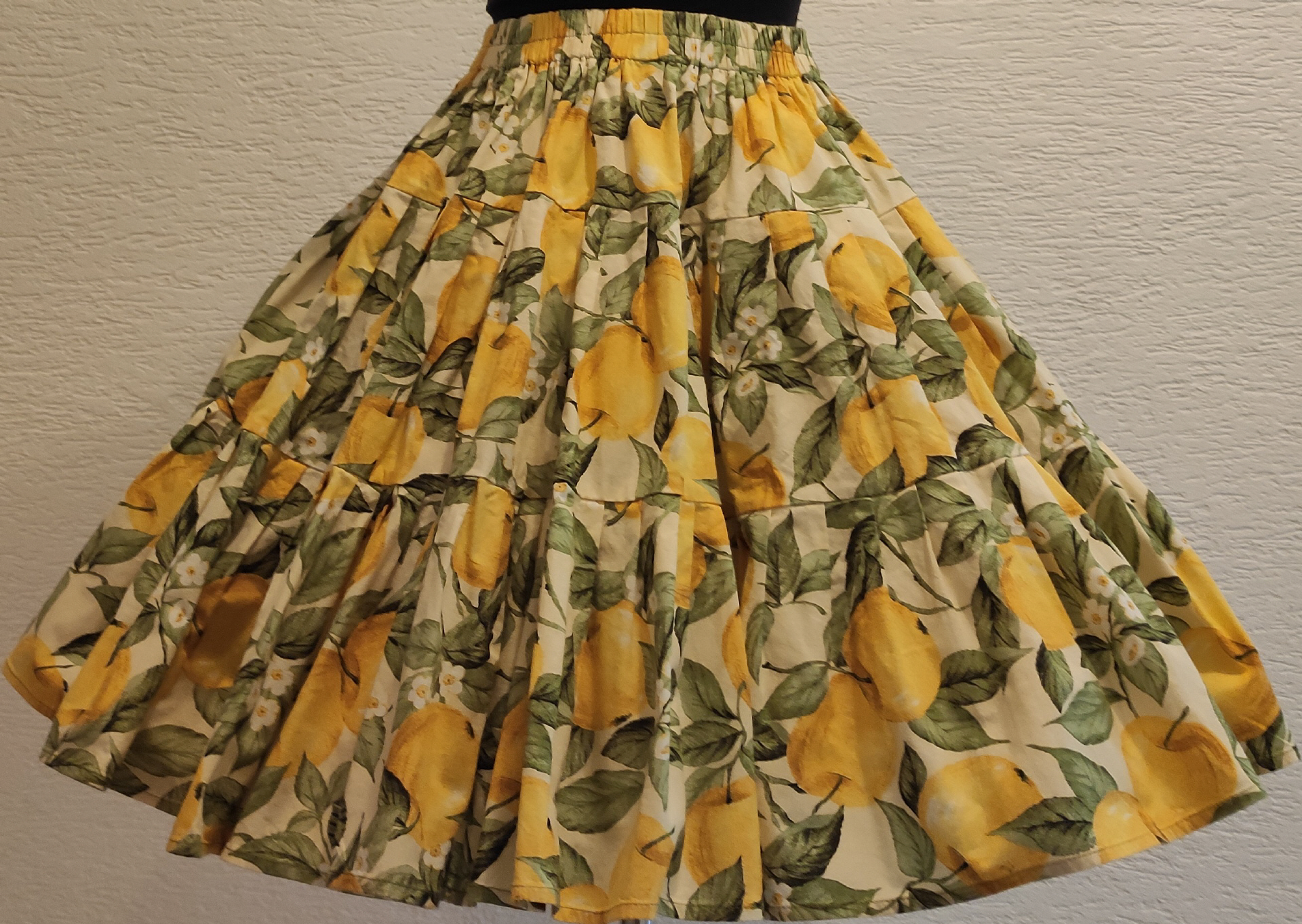 hellbeigener Dreistufenrock mit gelben Äpfeln, Blättern und BlütenGummibund in 3,5 cm BreiteNEU