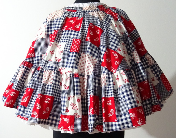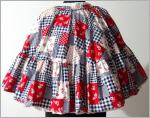 weitschwingender Tellerrock in den Farben weiss, rot und blauin Patchwork-Druck (siehe Bild)19 cm Volant3 cm GummibundMaterial: Mischgewebesehr guter Zustand