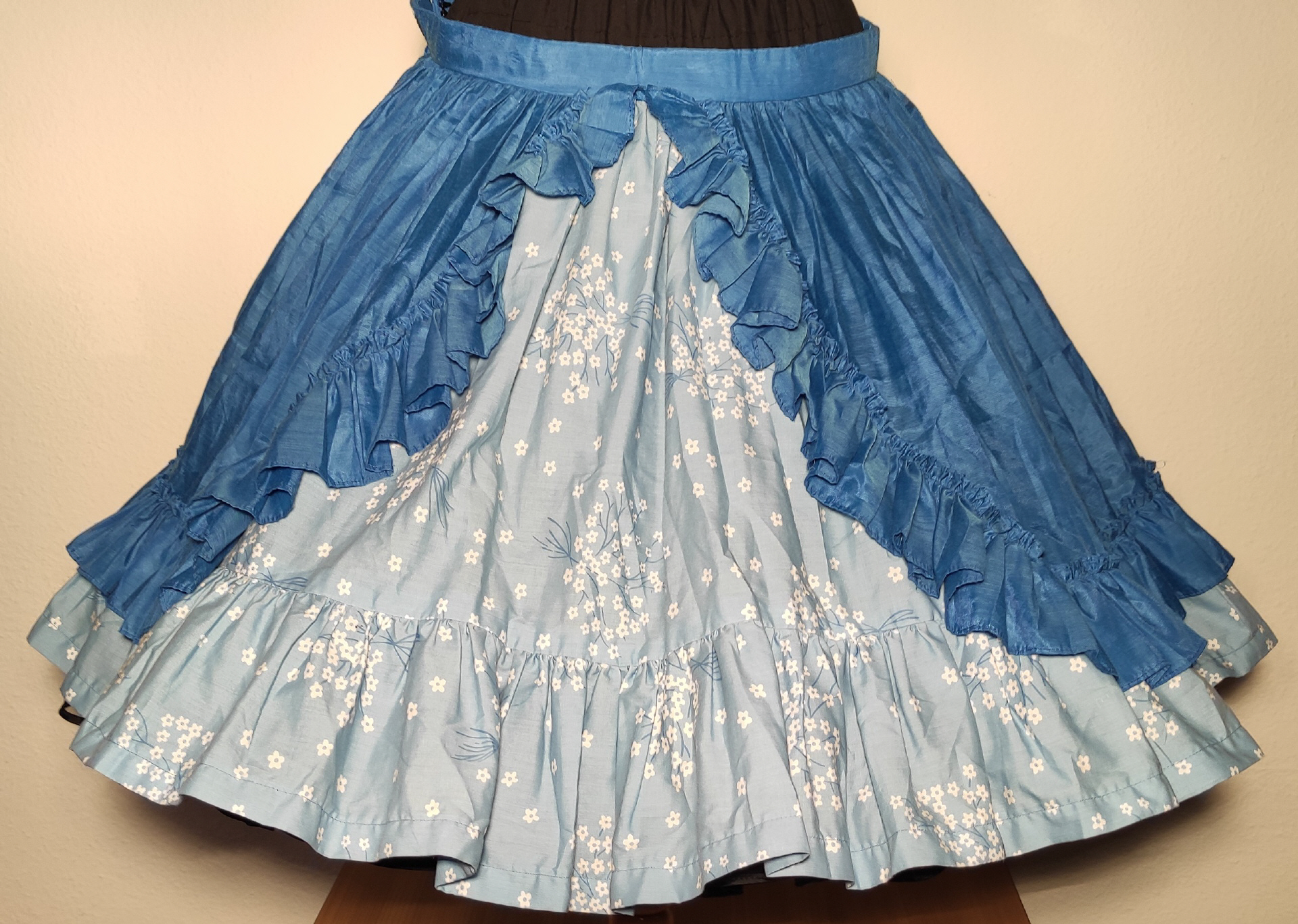 sehr weitschwingender Tellerrock in königsblau mit sehr viel Volants
