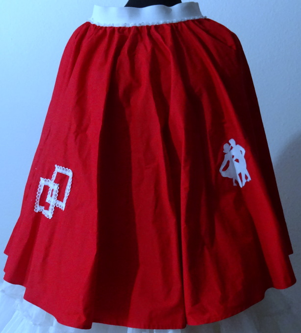 roter Tellerrockmit weissen aufgenähte SD-Zeichen in weisser Spitze und weissen Tanzpaaren3,5 cm breiter weisser Gummibund mit weisser SpitzeMaterial:100 % BaumwolleTOP Zustand