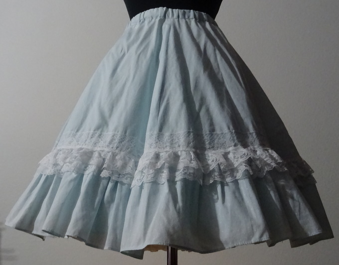 zarthellblauer Bahnenrock mit zarten weissen Pünktchen
