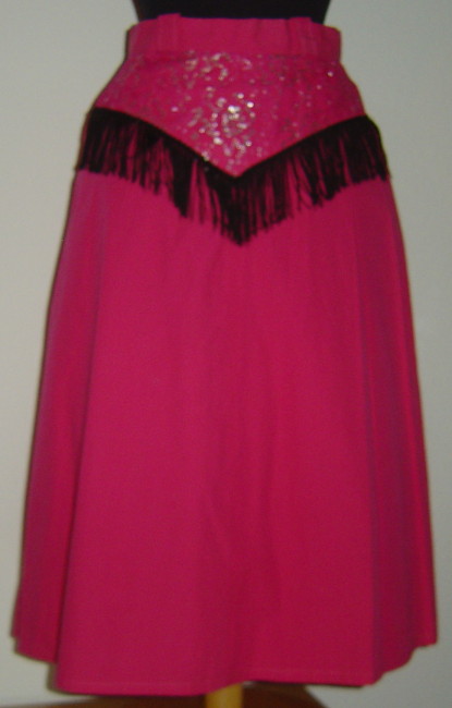 fuchsia farbener Westernrockim vorderen Bereich verziert mit silberner Spitze und schwarzen Fransenhinten 18 cm Reissverschluss und starrer Bund mit Gürtelschlaufen guter Zustand