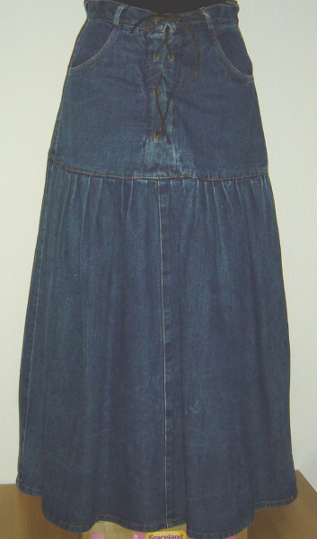dunkelblauer JeansrockGrösse 38100% Cottonvorne mit Lederriemen als Schnürverschluss und zwei Eingrifftaschenam Bund Gürtelschlaufen für 3 cm breite GürtelGuter Zustand