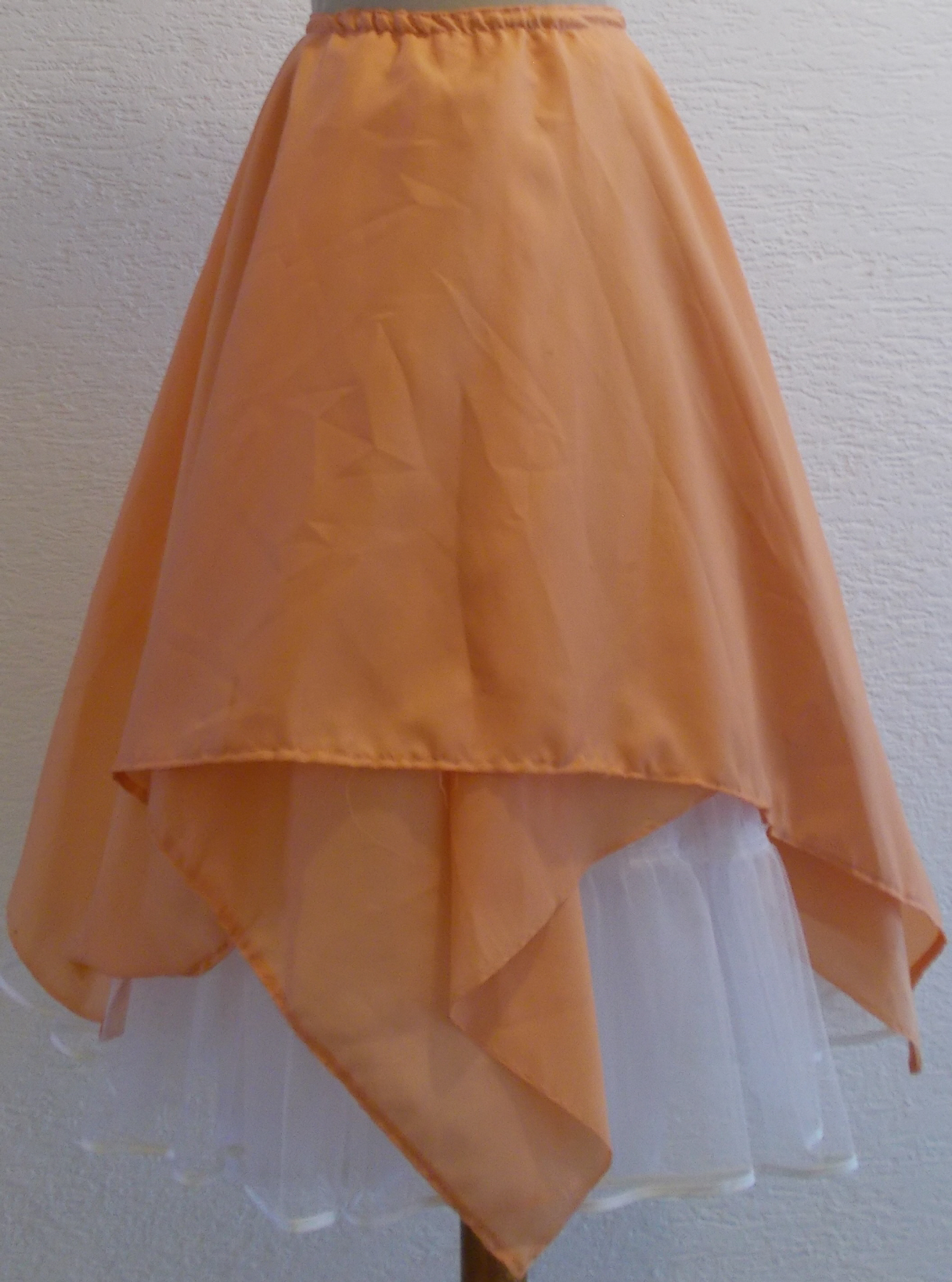 langer Rock in der Farbe apricot der Rock ist in Chiffonstoff mit Zipfeln gearbeitet ( hat einen interessanten Look)doppellagigGummibundsehr guter Zustand