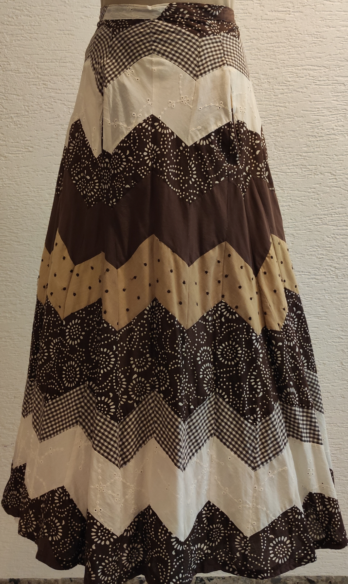 langer Rock in braun Tönen in zick zack Form9 Stufenhinten mit Reisverschluss (21 cm)starrer Bund in 2 cm Breite2 EingriffstaschenUnikat, sehr aufwendig gearbeitetguter Zustand