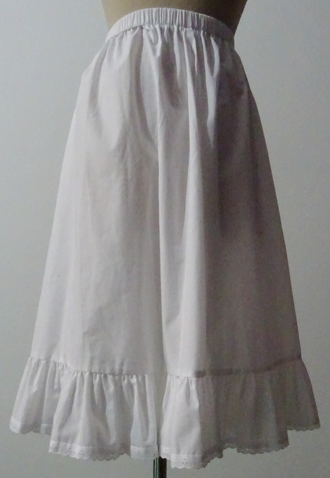 langer weisser Rockunten ein 12 cm breites Volant verziert mit weisser Spitze mit Lochstickerei2,5 cm breiter Gummibundauch als Unterrock zu nutzen!Material:65 % Polyester35 % Cottonsehr guter Zustand
