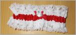 Strumpfband (SB-221) weisses Strumpfband aus edler weisser Spitze und rotem Satiband mit kleinem Satinschleifchen und ... 10,00 EUR (zzgl. Versandkosten)