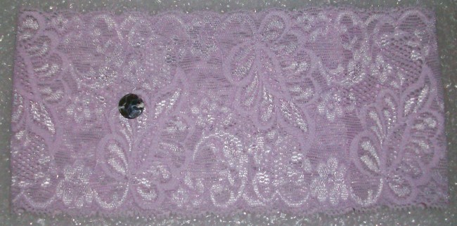 Strumpfband aus hellrosa elastischer Spitzekleine aufgenähte ScheibeNeu