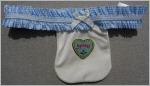 Strumpfband für die "Wies´n" in sehr feinem hellblau-weissem Karodas Strumpfband hat ein weisses Täschchen mit einem Herzchen und der Aufschrift "Spatzl" und weissem SatinschleifchenNEU