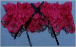 Strumpfband aus edler fuchsiafarbener Spitze mit gewelltem Randverziert mit schwarzer Satin-Blüte und dünnem schwarzem Satin-SchleifchenNEU