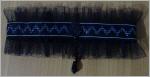 Strumpfband aus schwarzem Net das Gummiband ist mit blau-weiss schimmerndem Strass verziertvorne eine schwarze Blüte mit 5 cm langen verzierten PerlenNEU