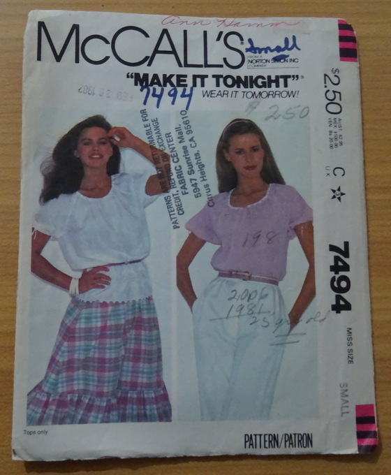 Mc CALL´S Mod. 7494Das hier abgebildete Schnittmuster der Bluse ist für die amerikanische Größe Small und für 6,00 € erhältlichDie Schnittmuster sind nicht neu !!!Die Beschreibung ist ausschliesslich in englischer Sprache