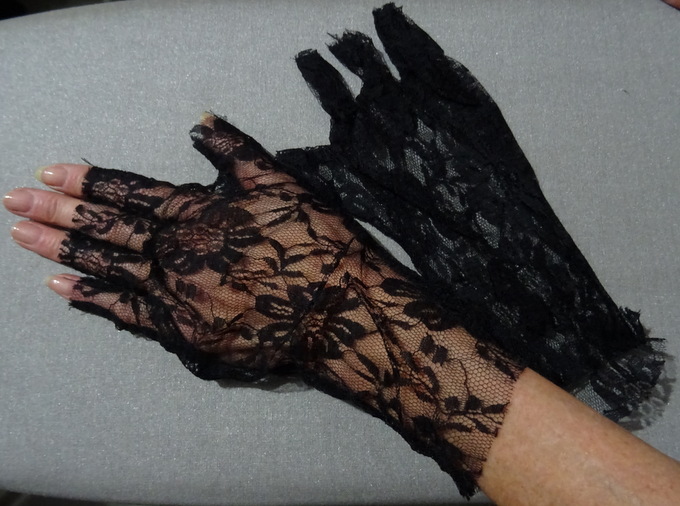 halbfingerlose Damenhandschuhe aus schwarzer SpitzedehnbarNEU