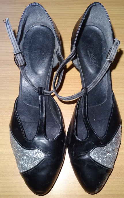 schwarze TanzschuheWildledersohleAbsatz: 5 cmGröße: US 8 MTOP Zustand