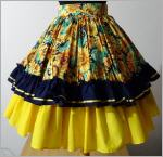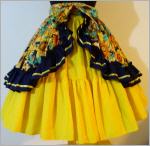 unten mit 10 cm dunkelblauem Volant, verziert mit gelbem Satinband