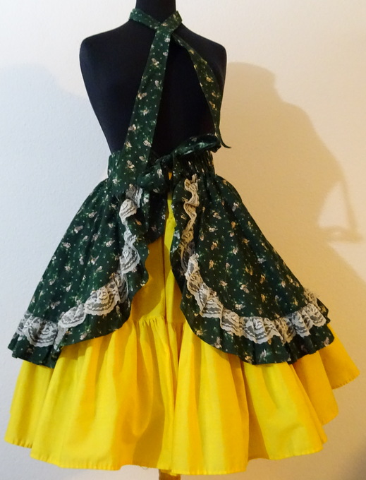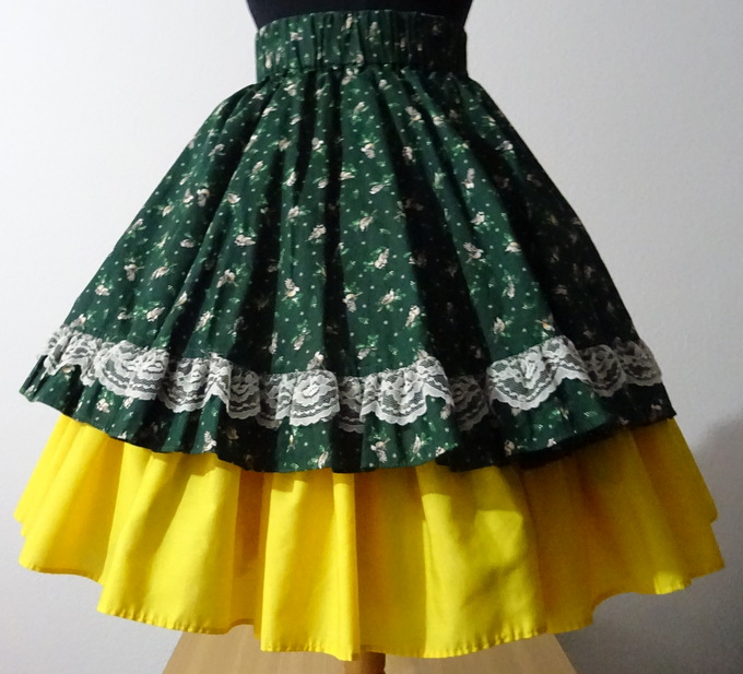 unten mit 8 cm breitem Volant, darüber kurzes Volant mit weisser Spitze