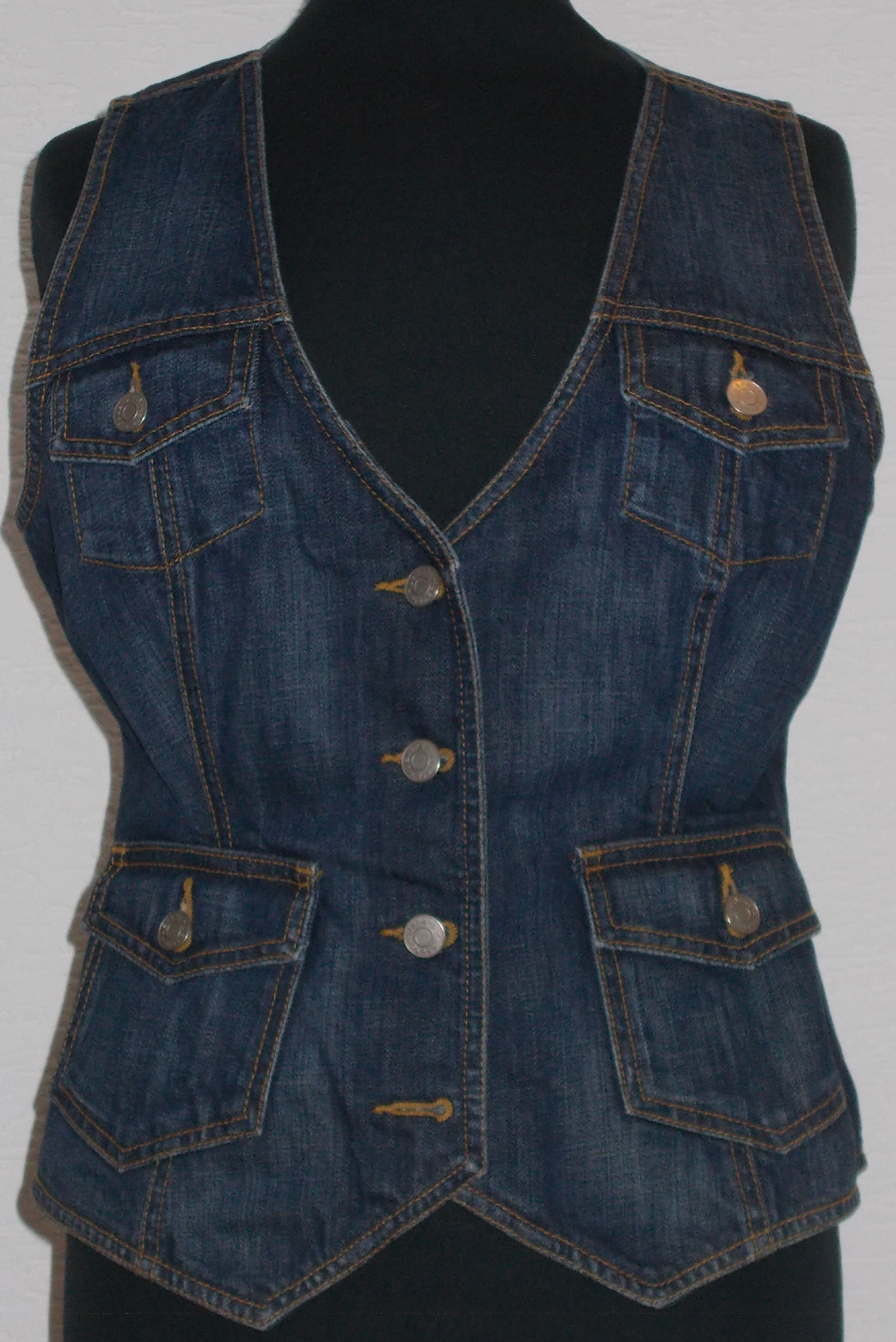 4 aufgesetzte Taschen jeweils mit Knopf zu schließen die oberen Täschchen sind 9 cm x 9 cm die unteren Taschen sind 13 cm x 12 cm vorne mit 4 Knöpfen zu schließen