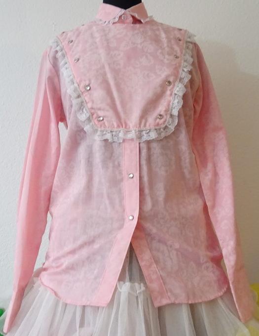 rosafarbene Westernbluse im "John Wayne Stil" mit wunderschönen weissen Rosenornamenten