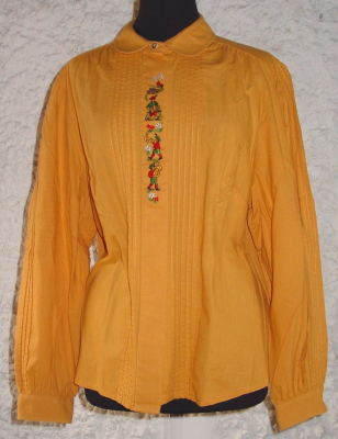 Grösse M/LFarbe ockergelbverdeckte Knopfleiste mit Trachtenstickerei100% Baumwolle