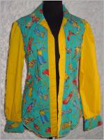 Damenbluse (BL-163) Blusen-Jäckchen ohne Knöpfe dürfte Grösse S sein hellblaues Stiefelmuster und uni-gelbe Ärmel su... 20,00 EUR (zzgl. Versandkosten)