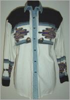Westernbluse von Adobe Rose S (WBL-002) Farbe weiss mit jeansfarbenem Kragen und Knopfleiste aufgesetzter Sattel (nach unten offen) in sc... 30,00 EUR (zzgl. Versandkosten)