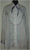 Westernbluse (WBL-024) hellblau-dunkelgrau-rot karierte Bluse mit stehendem Volant am Halsausschnitt vorne v-förmig ange... 22,00 EUR (zzgl. Versandkosten)