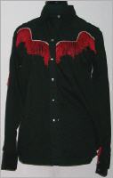 Westernbluse Rockmount Ranch Wear 36 (WBL-020) am Sattel und an den Ärmeln rote Fransen, hellgraues Zierband weisse Perlmuttknöpfe US-Grösse 36 ... 48,00 EUR (zzgl. Versandkosten)