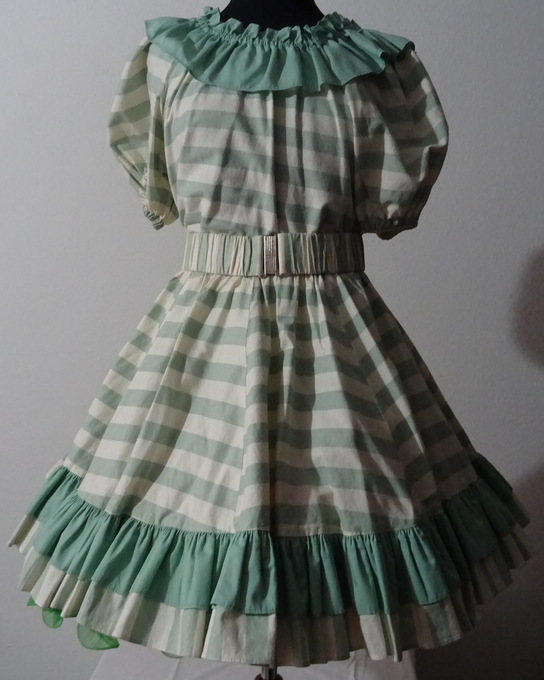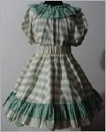 Rock: weitschwingender Bahnenrock in 7 Bahnen unten ein 13 cm breites Volant, verziert mit 8 cm Rüsche 3 cm breiter Gummibund