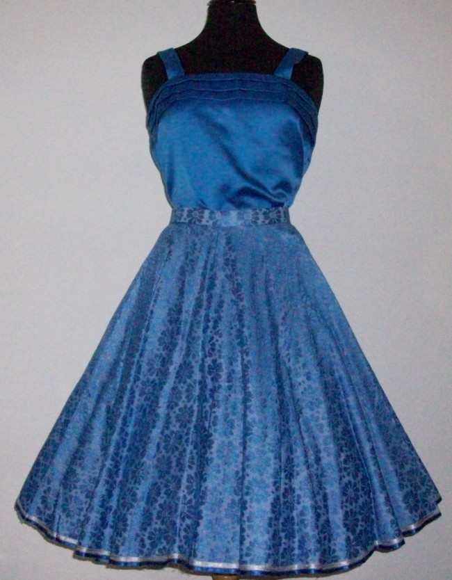 blauer 2-TeilerOberteil ärmellose BluseGrösse 36100% PolyesterRock aus blauer Spitze, aber voll gefüttertstarrer Bundhinten 20 cm Reissverschluss