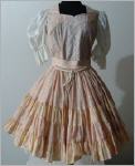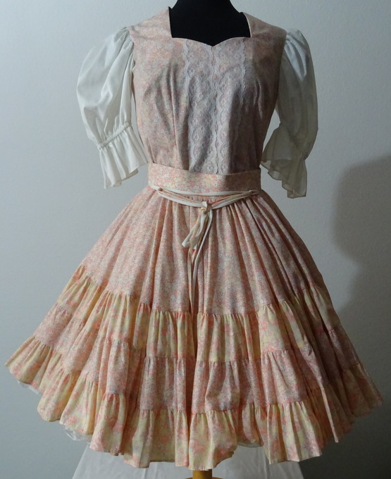 Rock: weitschwingender Stufenrock in 4 Stufen vorne ein netter Knüpfgürtel hinten 20 cm Reissverschluss die unteren 3 Rüschen sind jeweils 8,5 cm breit 5 cm breiter Gummibund (auf Wunsch kann ein Gummibund eingezogen werden)