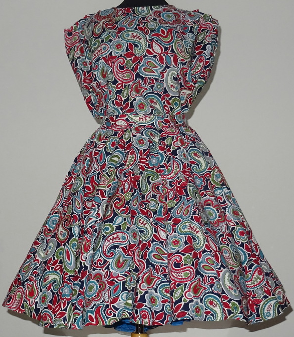 wunderschöner 2 Teiler mit OrnamentenBluse:runder Halsausschnitt ärmellosRock:weitschwingender Tellerrock seitlich mit Reissverschluss von 19 cm3 cm breiter starrer Bundhomemade und UnikatMaterial:Mischgewebeguter Zustand
