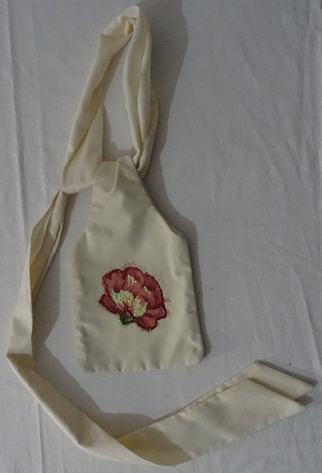 dazu gehört ein passendes Damentäschchen auf dem sich eine Blume verziert mit Glitter befindet und ein Bindegürtel