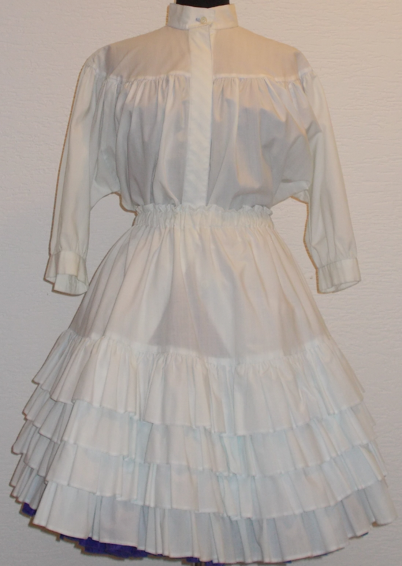 sehr weitschwingender Rock mit 4 Volants (jeweils 10 cm Breite) Gummibund 3,5 cm