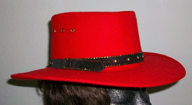 roter Filz mit schwarzem Hutband und goldenen Noppen54 cm KopfumfangKinnriemenneu