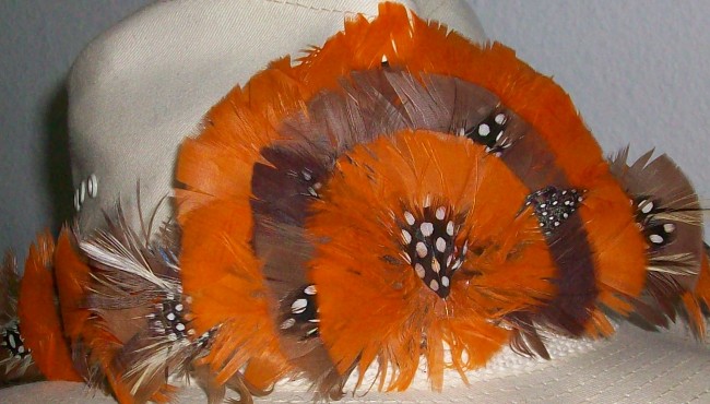 Hutband aus braunen und orangefarbenen Federnsehr edelbis 69 cmneu